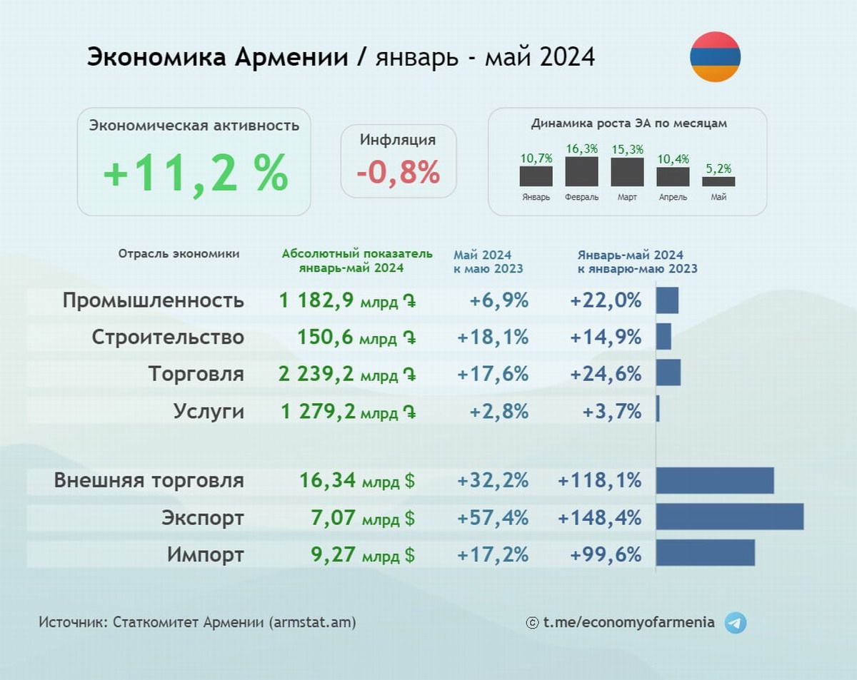 Crecimiento General: La actividad económica en Armenia creció un 11,2% en comparación con el mismo período en 2023.