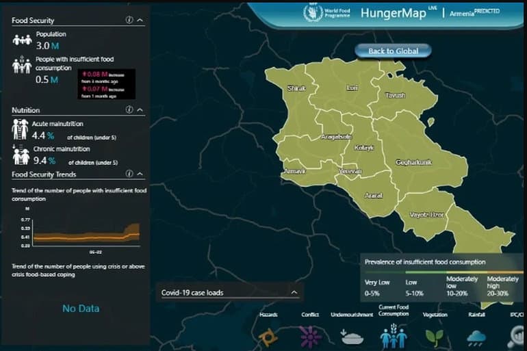 Alrededor de 500.000 personas en Armenia están desnutridas, según el Mapa del Hambre del Programa Mundial de Alimentos de la ONU.