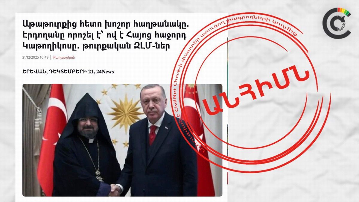 Los portales armenios yerkir.am y aravot.am replicaron artículos de los diarios turcos Sözcü y Aydınlık. Ambos aseguraron que la elección del Catholicós de todos los armenios no se realizará en Etchmiadzin, sino en Ankara y Estambul. Las notas incluso atribuyeron al presidente Recep Tayyip Erdogan la decisión de imponer como futuro Catholicós al patriarca armenio de Estambul, Sahak Mashalyan.