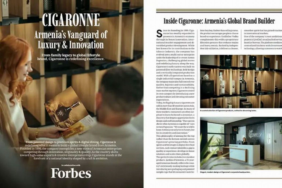 Armenia se posiciona en el radar internacional del lujo y la innovación, y lo hace con fuerza. Forbes Alemania publicó un artículo que destaca el ascenso creativo del país, impulsado por Pogossian Luxury Brand House, la compañía matriz de marcas como Cigaronne, Jardins d’Arménie, Godfather y LiveChef. El medio alemán describe a la firma como “un pionero del sector del lujo y la innovación en Armenia”.