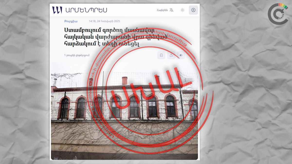 El pasado 22 de enero, diversos medios armenios y turcos informaron sobre un presunto ataque armado al Colegio Armenio Tatian, ubicado en el distrito Bakirkoy de Estambul. Sin embargo, posteriores investigaciones han demostrado que no fue la escuela en funcionamiento la que fue blanco del incidente, sino su antiguo edificio, actualmente alquilado a una escuela turca.