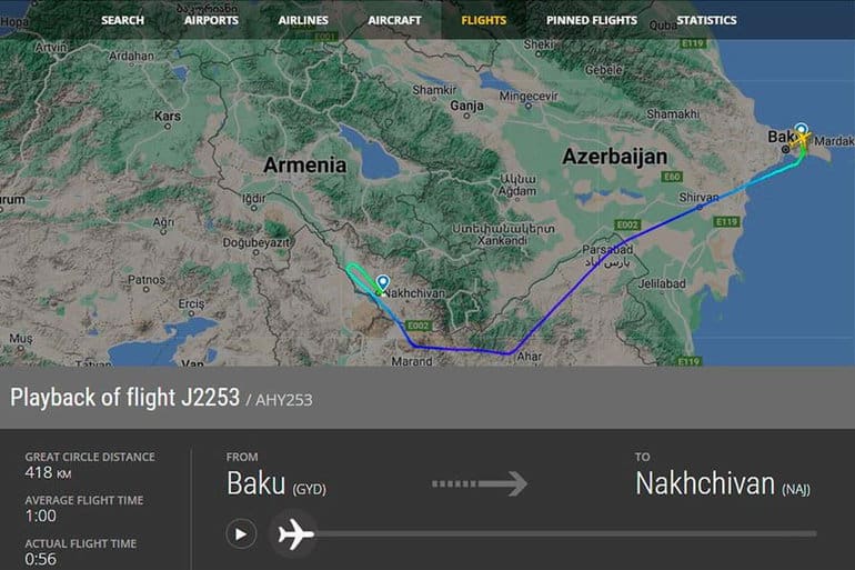 En el contexto de la agresión militar desatada por Azerbaiyán contra Armenia, los aviones de la compañía aérea nacional de Bakú “AZAL”, que solían realizar el tráfico aéreo Bakú-Najichevan-Bakú por los cielos de Armenia, comenzaron a volar a través del territorio de Irán.