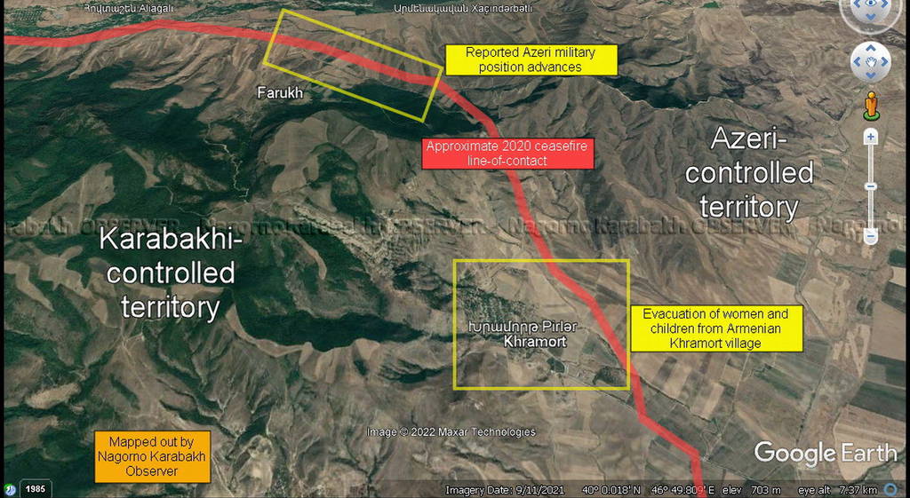 Más temprano, el Cuartel General de Información de Artsaj informó que hoy, a las 16:00 horas, las Fuerzas Armadas de Azerbaiyán violaron la línea de contacto en dirección a la aldea de Parukh en la región de Askeran y, por razones de seguridad, las mujeres y los niños de la comunidad cercana de Khramort fueron evacuados.