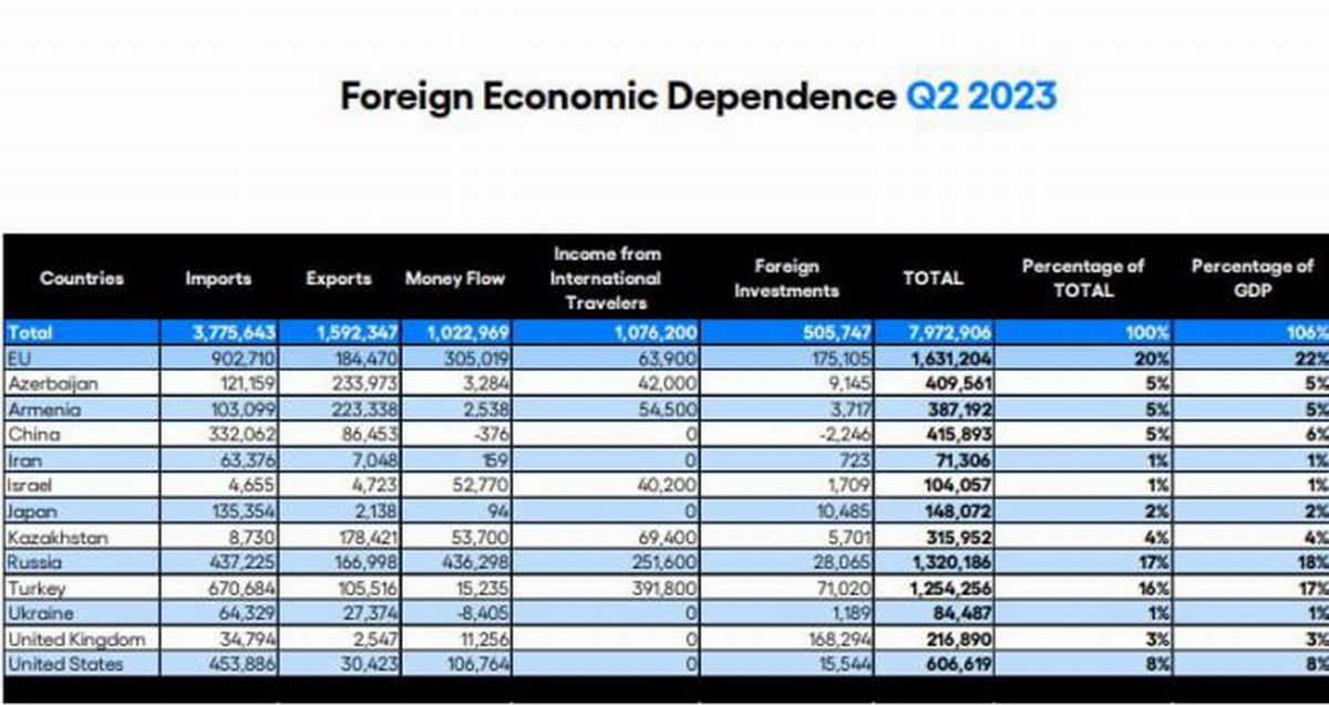 Como informara SoyArmenio, en el portal “Noticias – Georgia” da como ejemplo las fluctuaciones del indicador de dependencia económica de Rusia en los últimos años: 2003 – 16%; 2012: 9,1%; 2022: 18,3%.