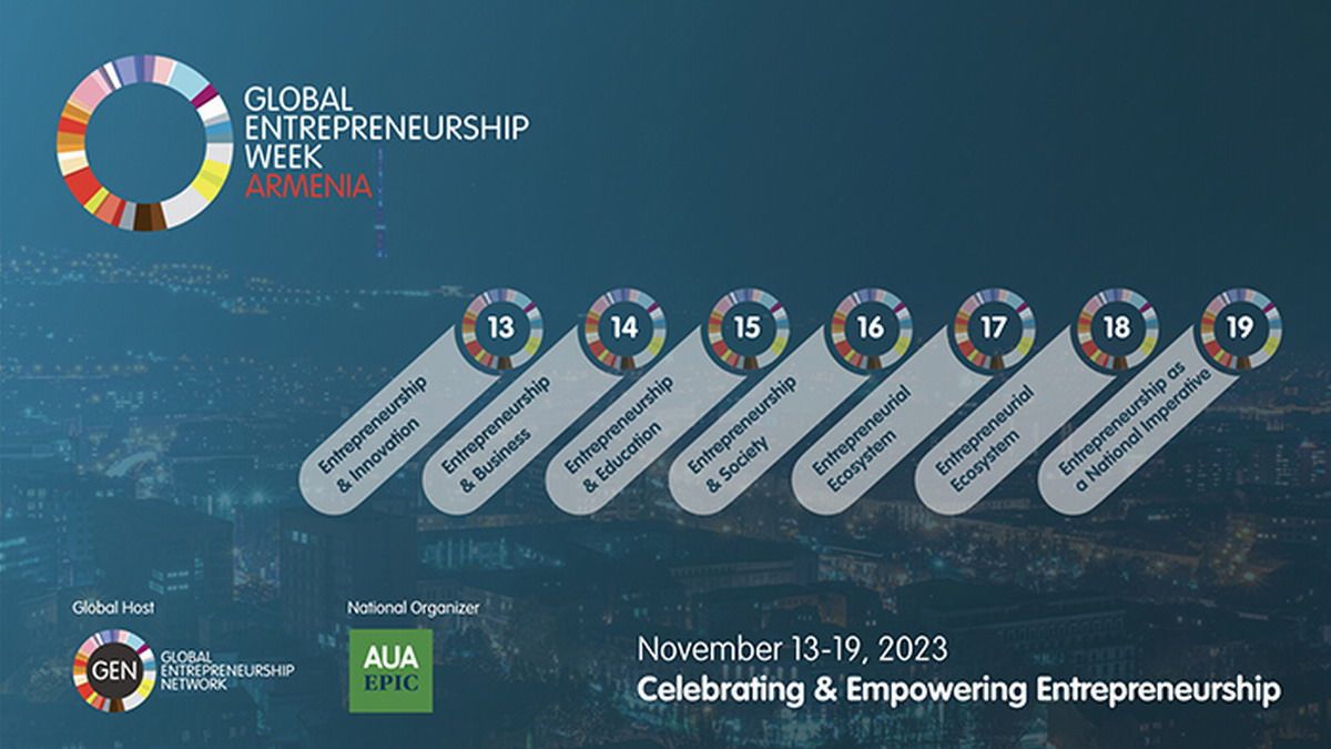 El Centro de Innovación de Productos y Emprendimiento (EPIC) de la Universidad Americana de Armenia (AUA), como representante oficial de la Red Global de Emprendimiento (GEN), reunió a representantes del ecosistema emprendedor para celebrar la Semana Global del Emprendimiento GEW Armenia 2023 que se lleva a cabo del 13 al 19 de noviembre.