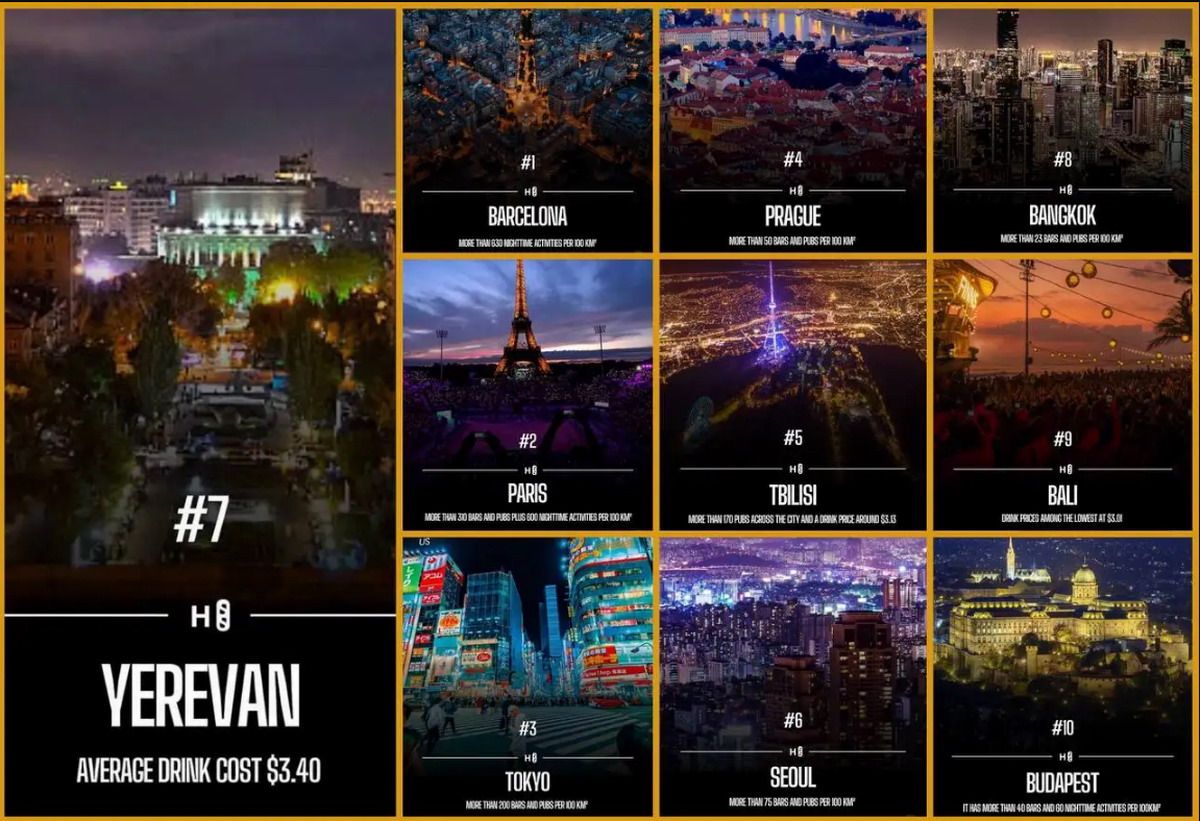 “Armenia no suele aparecer primero en la conversación sobre vida nocturna, pero Ereván tiene un ambiente único”, señalaron los autores del estudio. En la ciudad, las bebidas cuestan en promedio 3,40 dólares y muchos bares cierran a las 4 de la mañana, un horario competitivo frente a otros destinos del ranking.