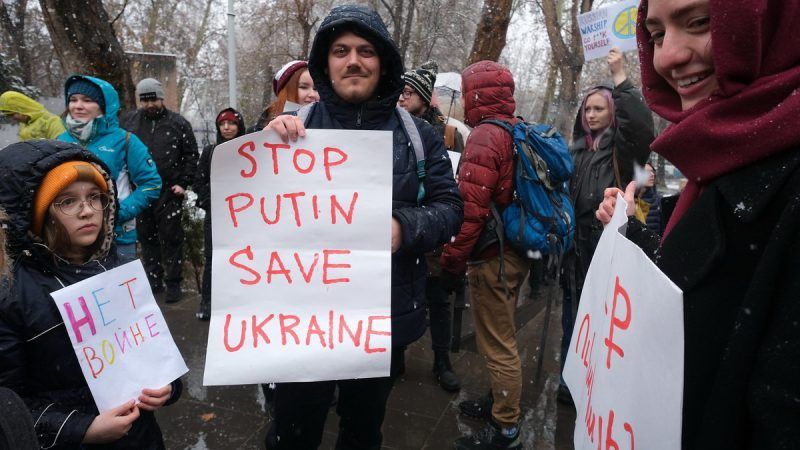Unos cientos de manifestantes, armenios, rusos y ucranianos, salieron a las calles de Ereván para “resistir la guerra”, como decían muchos de los carteles. Los manifestantes también corearon ‘No a la guerra’ (Нет войне) en ruso durante la marcha.