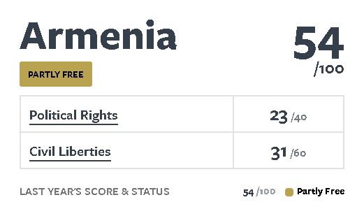 En ese contexto, Armenia mantiene su clasificación como país “parcialmente libre”, con 54 puntos sobre 100.