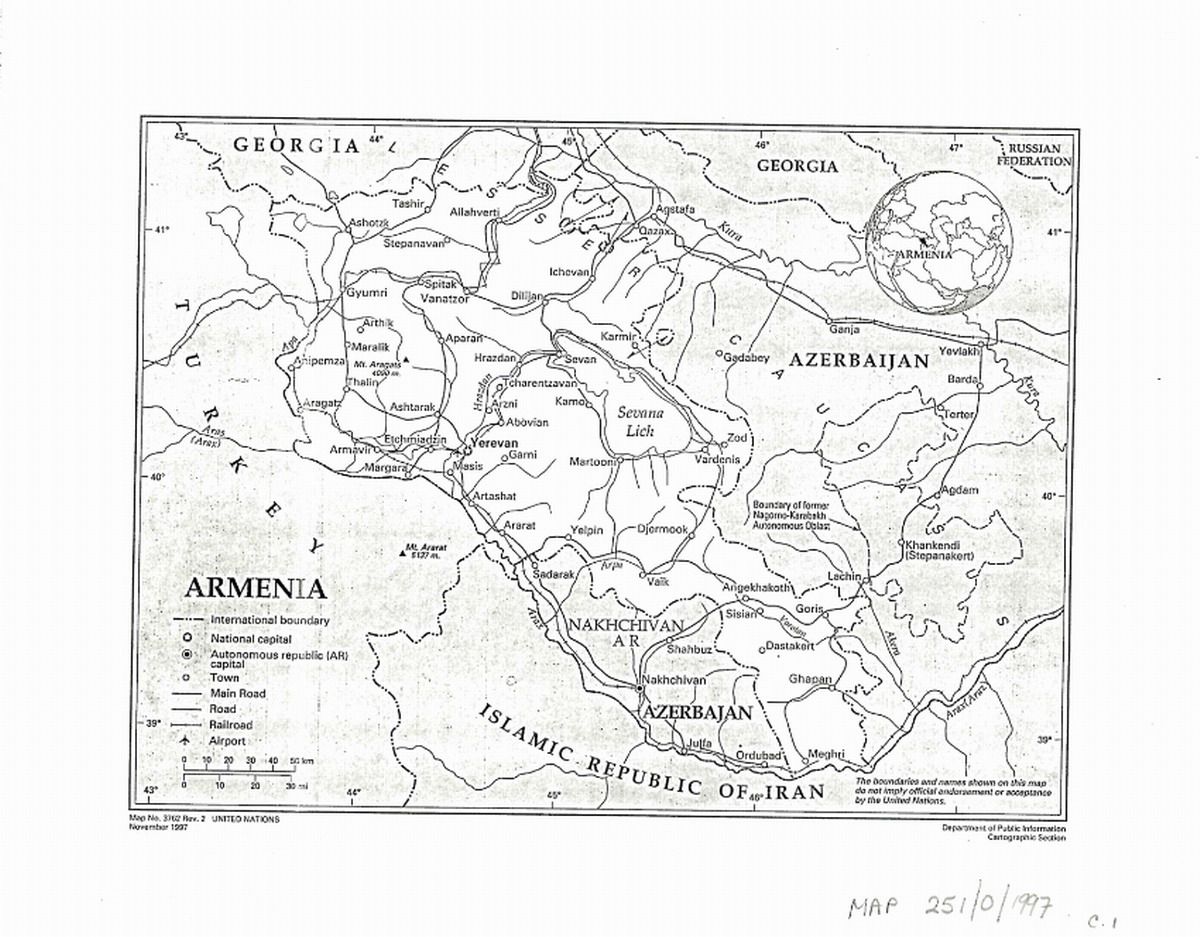 Durante la presidencia de Ter-Petrosyan en la ONU, en noviembre de 1997 se puso en circulación el siguiente mapa proporcionado por Armenia.