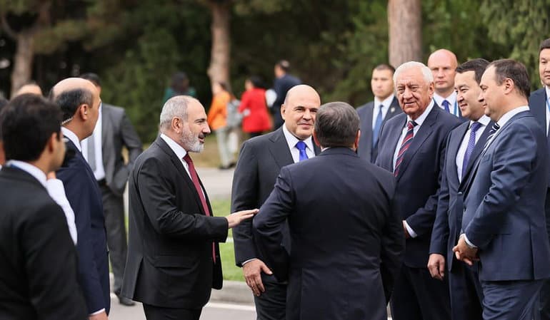 El primer ministro Nikol Pashinyan, quien se encuentra en una visita de trabajo a Cholpon-Ata, Kirguistán para discutir con los Primeros Ministros de los países de la Unión Económica Euroasiática (UEE) sobre como fortalecer el mercado interior, de la infraestructura de transporte y los aranceles aduaneros.