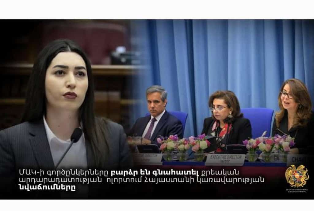 En el marco del evento, el Viceministro de Justicia Arpine Sargsyan hizo un informe sobre las reformas realizadas en el ámbito de la justicia penal en Armenia, en particular, las instituciones clave introducidas por los nuevos Códigos de Procedimiento Penal, que se basan en enfoques basados en la ley.