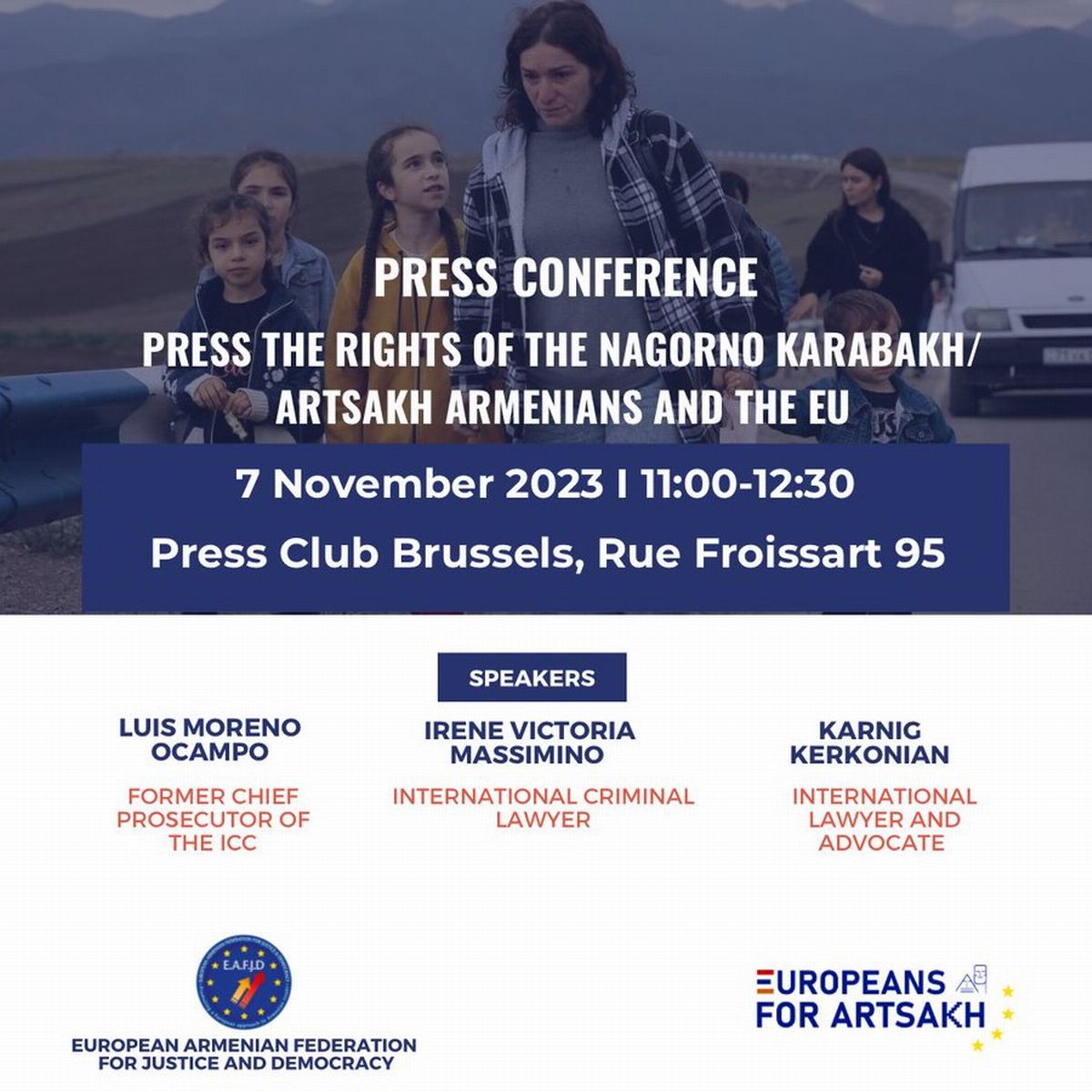 La Conferencia de prensa fue organizada por EAFJD y Europeos por Artsaj sobre “Los derechos de los armenios de Nagorno Karabaj/Artsaj y la UE”