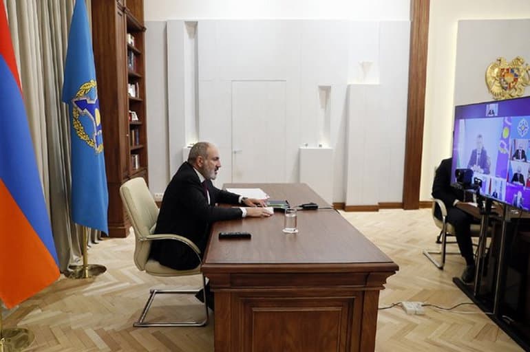 El primer ministro de Armenia, Nikol Pashinyan, presidió el martes una reunión extraordinaria del Consejo de Seguridad Colectiva de la OTSC, que se llevó a cabo en formato de videoconferencia, informa TASS