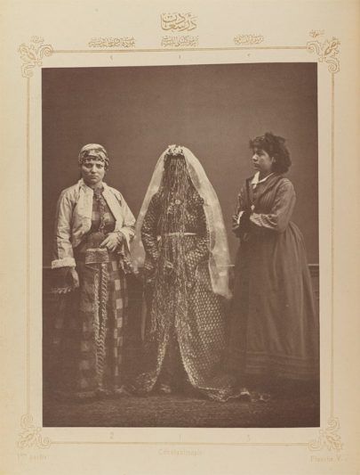 Fue Pascal a quien eligió como fotógrafo para crear imágenes de los pueblos del Imperio Otomano para la Exposición Internacional de 1873 en Viena. El estilo sofisticado de Sebah también se puede ver en la fotografía de la novia armenia: las borlas colgantes, el collar y el patrón dorado de su vestido arrojan luz, contrastando con el delicado encaje del velo.