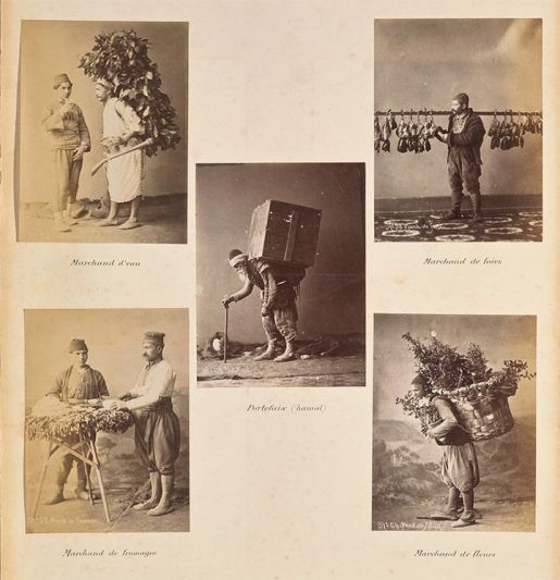 Sebah presta la misma atención a la composición y la tonalidad en el álbum “Trajes Turcos Populares” de 1873, que fue encargado por el diplomático otomano, artista y fundador de la Academia de Bellas Artes de Estambul, Osman Hamdi Bey.