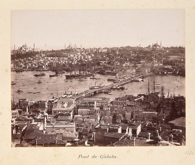 Los hermanos fotógrafos armenios Abdullahyan se destacaron en la creación de paisajes, retratos y escenas de la vida cotidiana en las principales ciudades del Imperio Otomano. Su fotografía del Puente Galata en Constantinopla es notable porque muestra la Ciudad Vieja. En la imagen, lo tradicional se encuentra con lo moderno, con los minaretes elevándose en la distancia, y se ven imágenes borrosas de barcos en el fondo, que recuerdan a lugares comerciales concurridos.