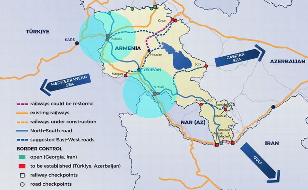 Según explicó Pashinyan, la iniciativa no se limita a carreteras o trenes. El proyecto contempla oleoductos, gasoductos, líneas eléctricas, cables de Internet y un ferrocarril que conectaría Ereván y Bakú a lo largo de la frontera con Irán.