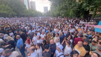 in Armenia, Politica, Religion, Sociedad Iglesia y oposición marcharon en Ereván en apoyo a Samvel Karapetyan, mientras Armenia sufre misteriosos apagones